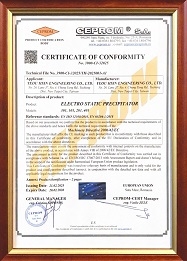 本公司空氣汙染防制設備通【歐盟CE認證】擁有歐盟CE證書,已多套設備銷售至歐洲。